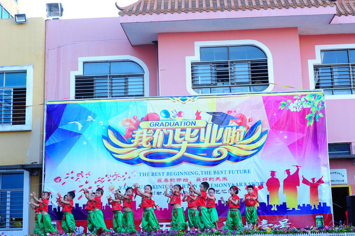 在同歡在歌頌惜別、感念師恩、憧憬未來、跨越起航下,我們開啟活動的第二篇章——回憶經(jīng)典.放飛童年。在這個畢業(yè)典禮活動上,大、中、小班的幼兒從中感受畢業(yè)的氛圍,同時為大哥哥大姐姐送上一份祝福。共演出節(jié)目8個,有舞蹈、英語故事表演、三句半、歌表演等形式于一體,不管是在選服飾上還是音樂上都是懷舊經(jīng)典的。同聚的今天,老師和中小班的弟弟妹妹也帶來了蘊含經(jīng)典的祝福,希望我們大班畢業(yè)的孩子能夠緬懷過去,展翅未來。