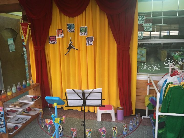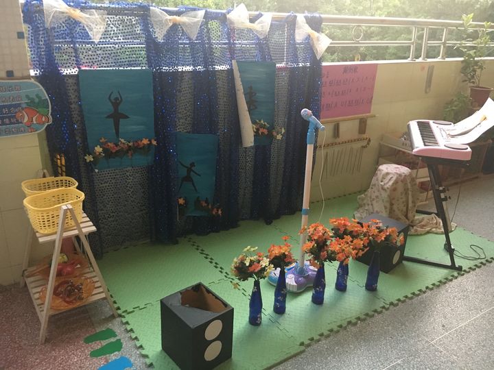 音樂區(qū)角的開設(shè)是音樂集體教學(xué)活動(dòng)的延伸,是與音樂集體教學(xué)活動(dòng)并重,是相輔相成的,對于幼兒音樂素養(yǎng)的提高,節(jié)奏感、韻律感、美感的把握是不可缺失的重要組成部分。音樂材料合理搭配要充分的結(jié)合幼兒的心理發(fā)展特點(diǎn),結(jié)合年齡段的興趣偏愛進(jìn)行創(chuàng)設(shè)。好的音樂區(qū)材料投放可以更好的促進(jìn)幼兒幼兒對音樂區(qū)材料的運(yùn)用能力。與此同時(shí)需要充分發(fā)揮幼兒的主觀能動(dòng)性,讓幼兒大膽的嘗試,積極主動(dòng)建構(gòu)知識體系,表達(dá)出自己對音樂的理解和體悟,感受音樂的美的享受。本次音樂區(qū)創(chuàng)設(shè),老師們主要抓住以下四個(gè)方面:第一,環(huán)境創(chuàng)設(shè):簡單的絨毯、彩條就可以輕松裝飾成一個(gè)溫馨的舞臺;第二,樂器:據(jù)幼兒的心理特點(diǎn)和行為規(guī)律投放樂器,應(yīng)該有計(jì)劃有目的的分批進(jìn)行投放,這樣樂器投放才更有效;第三,道具:主要包括服裝、臉譜等。利用這些道具可以吸引幼兒的注意力,并激發(fā)其對音樂的興趣 ;第四,基本的設(shè)備:主要是錄音、磁帶等可以輔助于音樂區(qū)活動(dòng)的有效開展。
