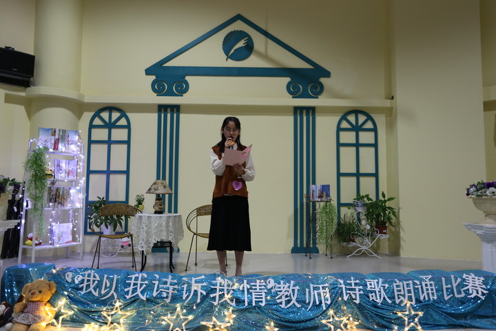 這一場詩歌“盛宴”,全體參賽老師一個(gè)個(gè)正裝上臺,以飽滿的熱情和昂揚(yáng)的斗志,抑揚(yáng)頓挫的語調(diào)誦讀出了一篇篇詩歌的韻味,呈現(xiàn)出的詩文情真意切,有的詮釋了對夢想的熱愛,有的滿懷激情的述說著美好未來,有的深情款款的回憶著青春的甘甜,她們以詩詞來描繪,以朗誦來揮灑,以比賽來詮釋。