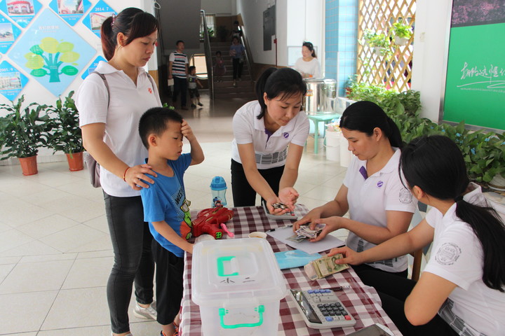 由家委和幼兒園財(cái)務(wù)一起清點(diǎn)各班義賣的善款并匯入紅十字會(huì)愛心賬戶。