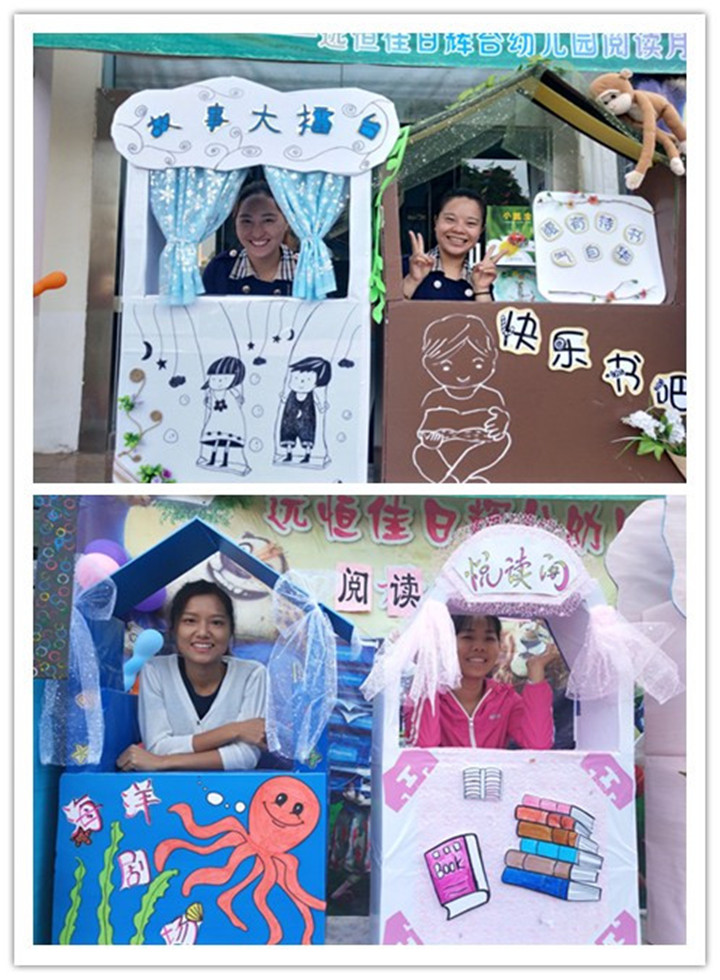 2.在濃郁的書香氛圍中,老師還特別為小朋友制作了故事小屋,還有響亮的閱讀月活動(dòng)口號(hào)