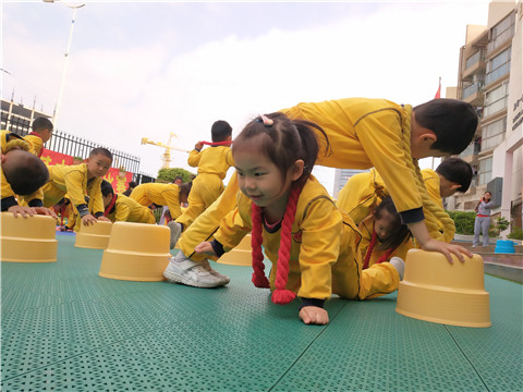 回顧上學(xué)期孩子們的實(shí)際動(dòng)作能力發(fā)展?fàn)顟B(tài),本學(xué)期在早操編排上我們進(jìn)行了全新的編排,以“哪吒鬧?!睘橹黝}展開編排,借助呼啦圈、溜溜布雙器械的結(jié)合進(jìn)行有效地動(dòng)作技能訓(xùn)練,增強(qiáng)體質(zhì),同時(shí)提高了幼兒對(duì)體育活動(dòng)的積極性。
