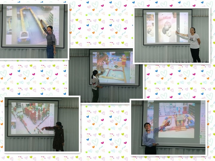 搭建結(jié)束后,老師們?cè)俅位氐揭趔w室分享自己的“作品”,向大家展現(xiàn)了屬于他們心中的精彩世界。幼兒園還組織老師們進(jìn)到班級(jí)互相觀摩學(xué)習(xí),相互介紹、探討搭建方法,積極尋找改進(jìn)措施。