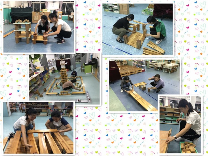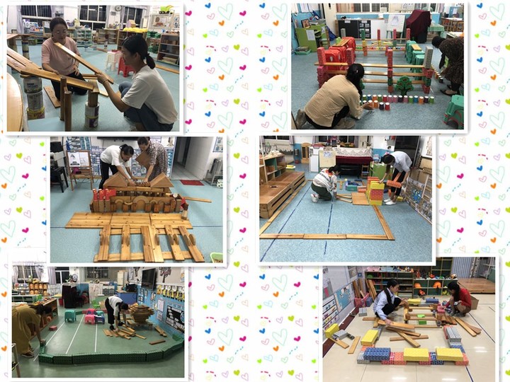 本次比賽是在前期有教研、中期有實(shí)踐的基礎(chǔ)上,班級(jí)老師精心準(zhǔn)備后開(kāi)展的。晚上6:00,老師們?cè)谝趔w室聽(tīng)完主持人講解規(guī)則后,回到各自的班級(jí)搭建積木。