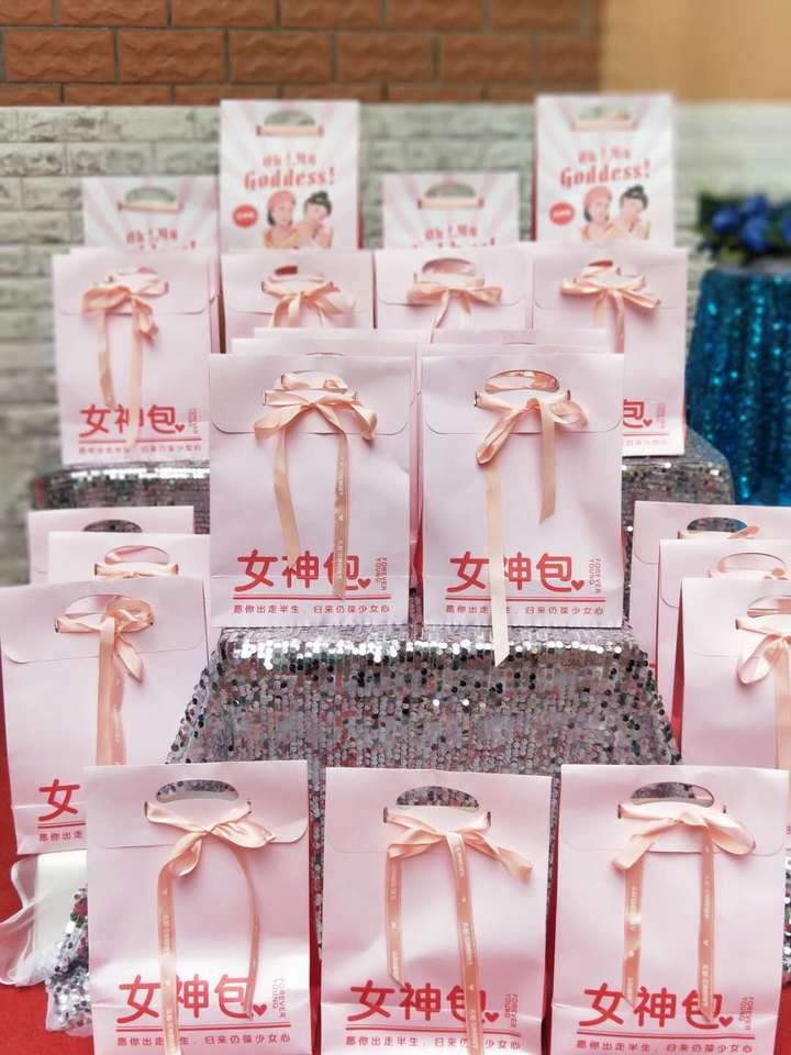 游戲互動后,幼兒園行政班子還為不老女神們送上了一份大大的女神包