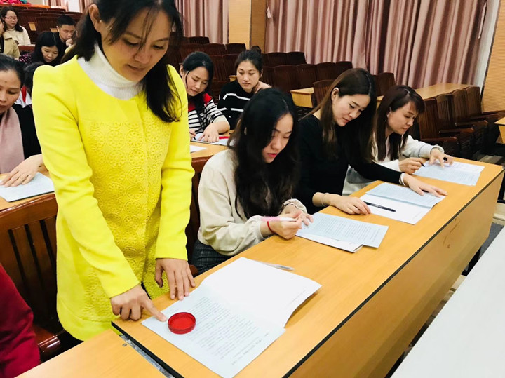 承諾儀式結束后,學校“學生發(fā)展中心”祝啟鳳主任還結合學生成長過程中出現(xiàn)的問題與困惑,以及家庭教育與學校相結合過程中出現(xiàn)的具體案例,對老師們開展了《教師情緒管理與溝通技巧》培訓。在培訓過程中,老師們認真傾聽,積極思考,謙虛求問,不僅以換位思考的角度,理解了孩子和家長們的心聲,同時也學習了如何從“積極教育”和“積極心理”的層面及時進行自我情緒調(diào)節(jié);如何對學生進行正面教育和積極心理疏導的知識和技巧。