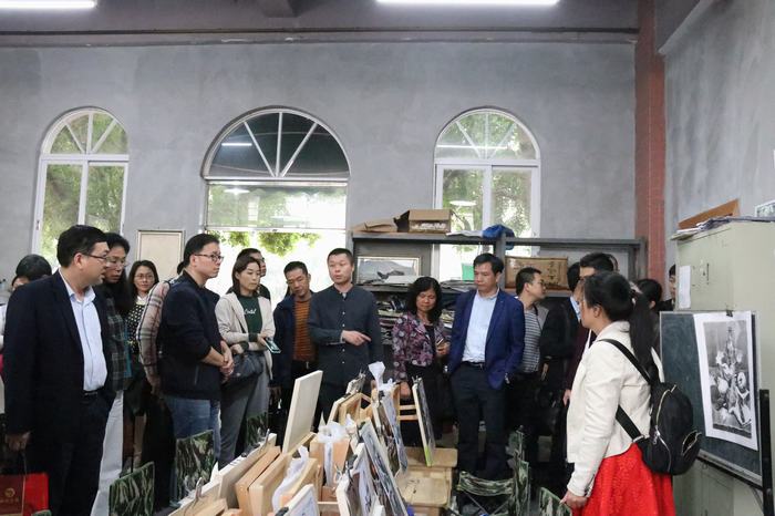 學(xué)校高中美術(shù)專業(yè)班負(fù)責(zé)人劉明登主任對(duì)我校高中美術(shù)、傳媒專業(yè)班的建設(shè)向來賓進(jìn)行了介紹,分享了我校專業(yè)班“低進(jìn)高出、低進(jìn)特出”的辦學(xué)經(jīng)驗(yàn),介紹了通過走專業(yè)培養(yǎng)之路,學(xué)生考上了包括中國美術(shù)學(xué)院、廣州美術(shù)學(xué)院、深圳大學(xué)等著名高校,為許多學(xué)子圓了大學(xué)夢的良好培養(yǎng)效果。