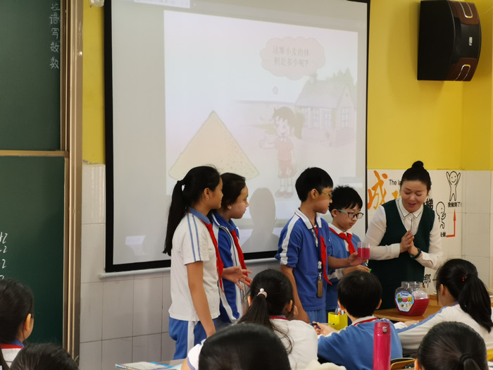 2.科學(xué)小實(shí)驗(yàn)。袁老師和葉老師帶我們?nèi)ヌ接憽皥A錐的體積”,“實(shí)踐是檢驗(yàn)真理的唯一標(biāo)準(zhǔn)”,讓孩子們經(jīng)歷體驗(yàn),建立從抽象到具體的思維過程。