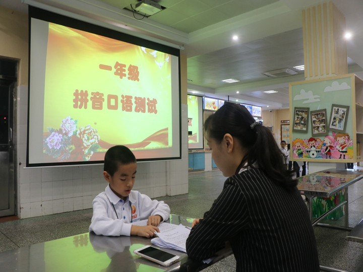 2016年11月22日上午第二節(jié)課,我校對(duì)一年級(jí)的學(xué)生進(jìn)行拼音測(cè)試,由本校語文組老師組成監(jiān)考隊(duì)伍,采取一對(duì)一的檢測(cè)模式,充分檢測(cè)了學(xué)生對(duì)于聲母,韻母,整體認(rèn)讀音節(jié),字詞,句子的認(rèn)讀掌握情況。