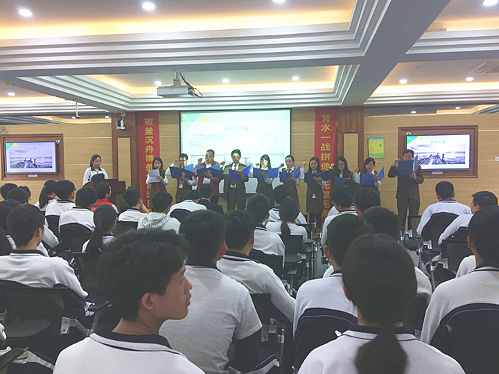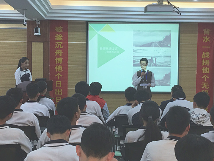 接下來教師代表劉德志老師發(fā)言:“最后一百天,為了每位學(xué)生的理想,我們2017屆全體高三教師將:忠于職守,以身作則;樂于奉獻,刻苦鉆研;穩(wěn)扎穩(wěn)打,科學(xué)備考;嚴(yán)實精細(xì),精益求精;精誠團結(jié),榮辱與共!”