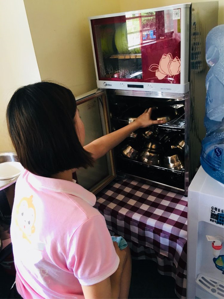利用消毒柜對(duì)每餐后碗勺筷消毒。