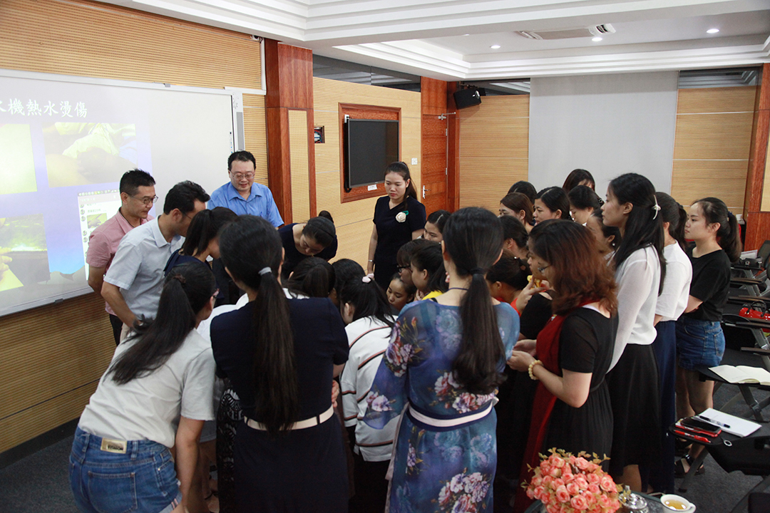 在集團(tuán)領(lǐng)導(dǎo)的盛邀及人社部劉秋月部長(zhǎng)、裝備部車家瓊部長(zhǎng)的陪同下,臺(tái)灣托育專家賴志彬教授和包崇明教授親臨現(xiàn)場(chǎng),為大家?guī)?lái)《托育安全及危機(jī)處理》的分享。包教授通過(guò)視頻觀摩,讓大家了解臺(tái)灣托嬰師護(hù)理工作的規(guī)范標(biāo)準(zhǔn)。通過(guò)現(xiàn)場(chǎng)與兩位專家的面對(duì)面交流,讓陪伴師們更深入了解了臺(tái)灣托育安全及危機(jī)的定義、標(biāo)準(zhǔn)化操作規(guī)范及各種危機(jī)的應(yīng)對(duì)策略。臺(tái)灣托育護(hù)理的專業(yè)成熟、規(guī)范嚴(yán)謹(jǐn),也給與我們的一線陪伴師帶來(lái)觀念和思考上的沖擊與啟發(fā)。