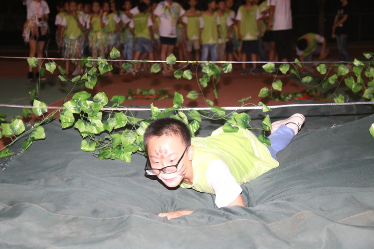 在“亞馬遜叢林探險(xiǎn)之篝火晚會(huì)”主題活動(dòng)中,還有樹蛙跳跳跳游戲、勇?lián)魠擦止肢F、咬蘋果、穿越亞馬遜叢林等游戲活動(dòng)。在游戲現(xiàn)場(chǎng),只見營員們齊心協(xié)力,小心翼翼地在樹藤下穿越,圓滿完成了叢林穿梭,還當(dāng)孩子違規(guī)時(shí),叢林怪獸會(huì)把違規(guī)學(xué)生抓進(jìn)山洞。有的營員用海綿猛擊叢林怪獸,怪獸被打得哇哇大叫,孩子們樂在其中,并且在參與中學(xué)會(huì)了合作、增進(jìn)了友誼,增強(qiáng)了團(tuán)隊(duì)合作能力。游戲結(jié)束后,營員們欣喜地獲得了許多魔法精靈、勇士勛章與獎(jiǎng)品。