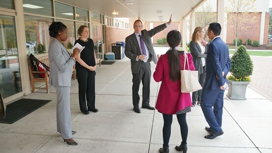 4月15日,宋遠標總裁等一行來到美國東部弗吉尼亞州的里士滿,受到美國彩虹堡副總裁Earl先生的熱情接待,在Earl先生的介紹下,宋遠標總裁等一行首先造訪了里士滿當?shù)氐囊患抑搅W校Collegiate School。同行進行訪問的還有美國彩虹堡課程與培訓主管Nicole女士、美國彩虹堡市場運營總監(jiān)Deb女士。
