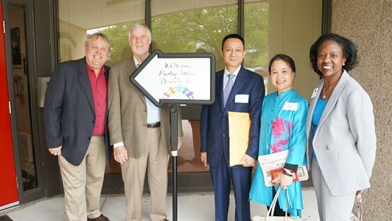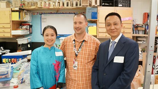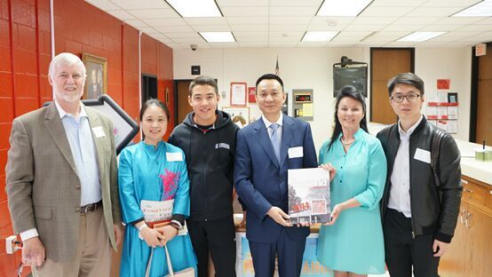 宋總、麥總與彩虹堡高層于Godwin高中門口留念