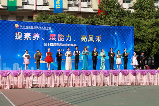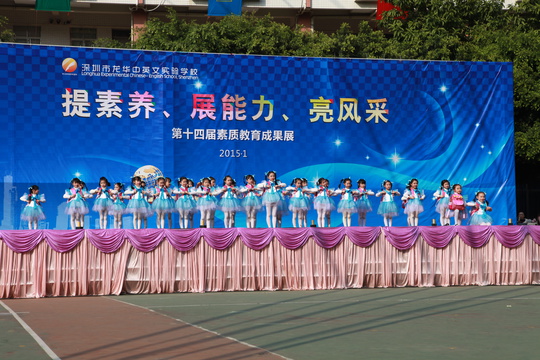 以“提素養(yǎng)、展能力、亮風(fēng)采”為主題的龍華中英文實(shí)驗(yàn)學(xué)校第十四屆素質(zhì)教育成果展示活動(dòng)于2015年1月9日下午在學(xué)校運(yùn)動(dòng)場成功舉辦,在全體演職人員的辛勤努力下,展示圓滿成功、活動(dòng)精彩紛呈。