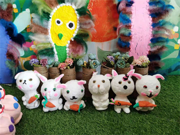 一花一世界,一樹一菩提。美麗的植物擁有治愈心靈的力量。二年級的同學圍繞“植物”主題進行創(chuàng)作。淺綠色背景墻上展示水彩作品,繪畫作品,手工太陽花、粘土花、花朵扇等。地板鋪草皮,搭配格子布,展示粘土多肉花盆,營造出絢麗多彩,花香滿園的氛圍。讓我們一起在二年級同學創(chuàng)造的植物園中感受心靈的蕩滌吧!