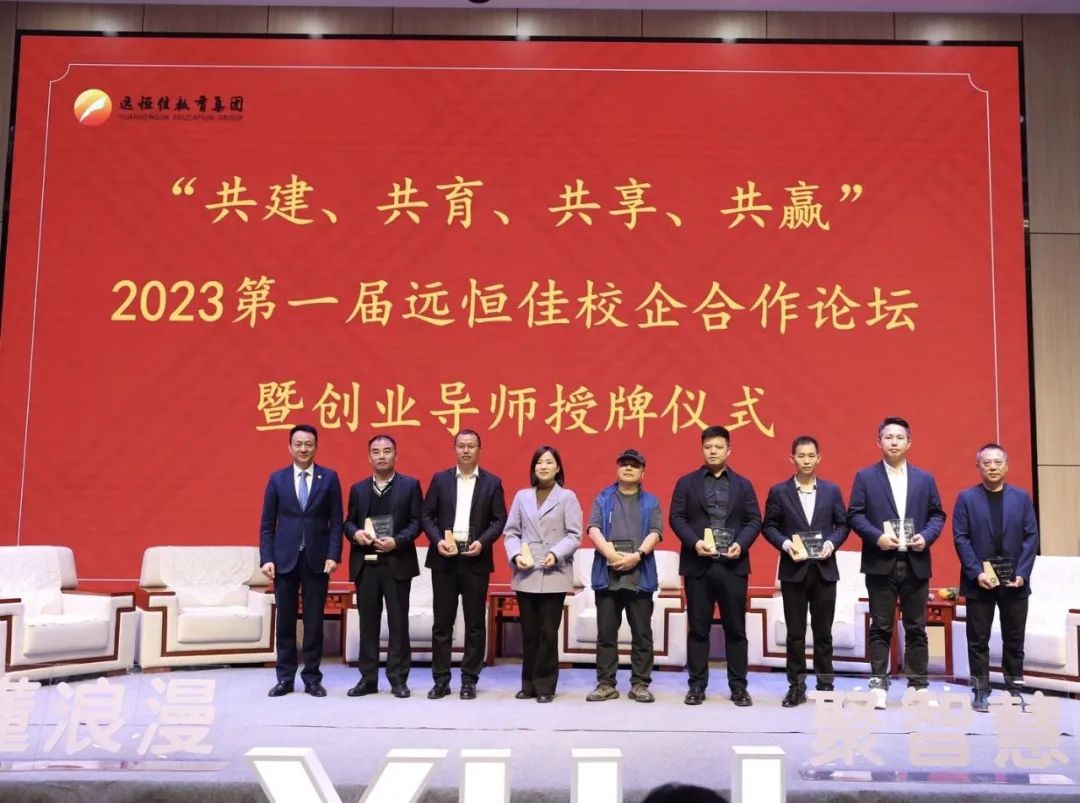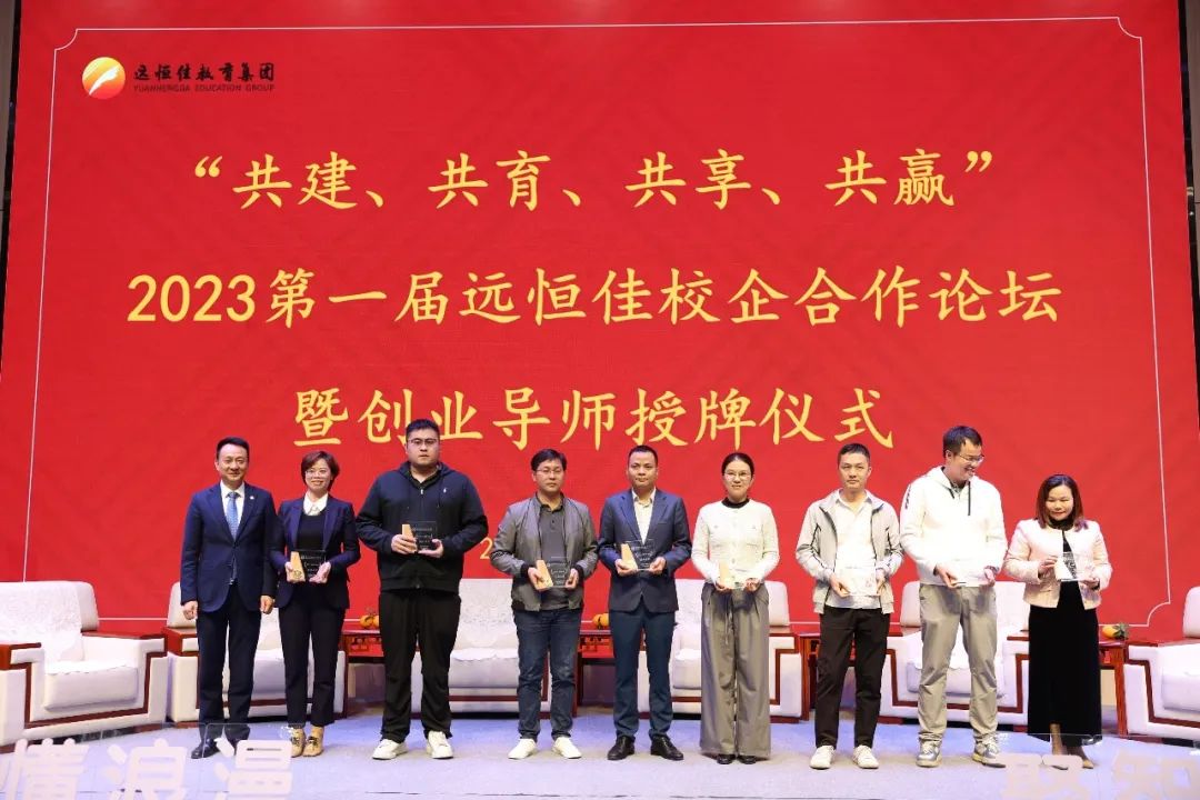 遠(yuǎn)恒佳現(xiàn)代產(chǎn)業(yè)學(xué)院首創(chuàng)了公司制職業(yè)教育模式,學(xué)生組建28人創(chuàng)業(yè)小組,成立了創(chuàng)業(yè)公司,通過企業(yè)課堂、企業(yè)家大講堂、公司例會(huì)和創(chuàng)業(yè)實(shí)踐項(xiàng)目等,開展創(chuàng)新創(chuàng)業(yè)學(xué)習(xí)實(shí)踐。為更好地實(shí)施公司制教育模式,本屆論壇聘任了40位企業(yè)家擔(dān)任創(chuàng)業(yè)導(dǎo)師,隆重舉行創(chuàng)業(yè)導(dǎo)師授牌儀式。遠(yuǎn)恒佳教育集團(tuán)宋遠(yuǎn)標(biāo)董事長、麥麗芬副董事長向創(chuàng)業(yè)導(dǎo)師們頒發(fā)了導(dǎo)師牌匾。