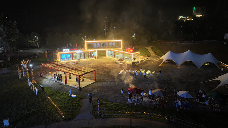 星空露營(yíng)園以帳篷露營(yíng)、戶外美學(xué)、潮流造趣和內(nèi)容聯(lián)合等元素,開(kāi)創(chuàng)了全新的戶外生活方式。我們整合了營(yíng)地、景區(qū)、休閑、研學(xué)、運(yùn)動(dòng)、玩樂(lè)、主題活動(dòng)等模式,推出了載人無(wú)人機(jī)、太空VR體驗(yàn)館、蹦極塔、燒烤區(qū)、篝火晚會(huì)、一九酒吧、星空音樂(lè)吧等項(xiàng)目,滿足不同人群的山野體驗(yàn)、精致露營(yíng)、親子游樂(lè)、文青聚集、潮玩打卡等需求。